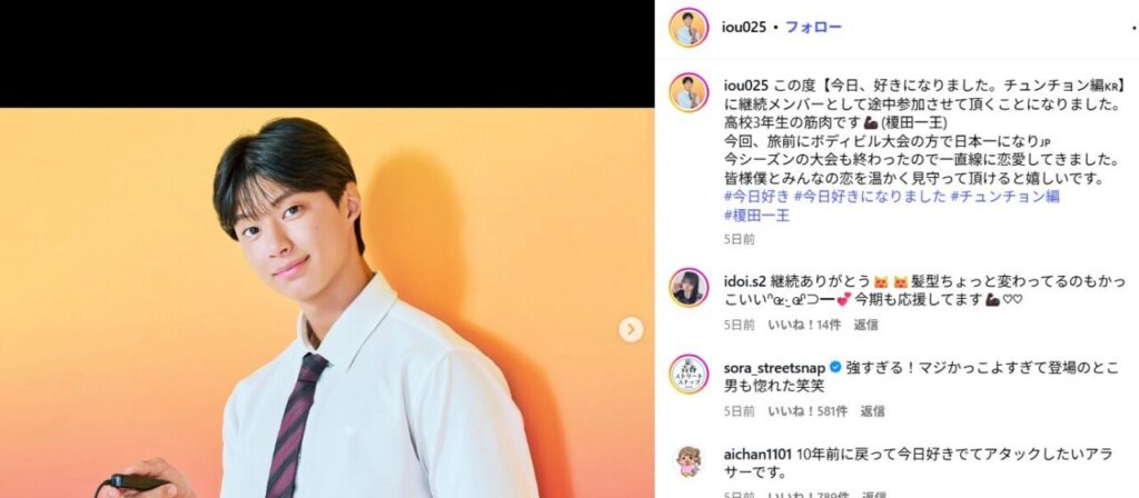 この圧倒的なスタイルは、恋愛リアリティ番組「今日好き」のなかでもひと際目立つ要素となっており、モデルや俳優のような雰囲気を持つ高校生としてSNSでも大きな話題を呼んでいます。