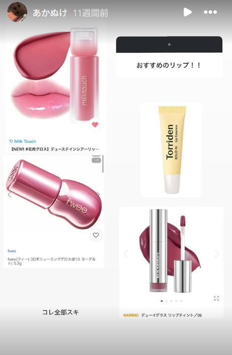 SNSやYouTubeでは、自身のビューティールーティンや、愛用しているコスメ、スキンケアアイテムなどを積極的に紹介しており、視聴者にとって非常に参考になる内容が多く投稿されています。