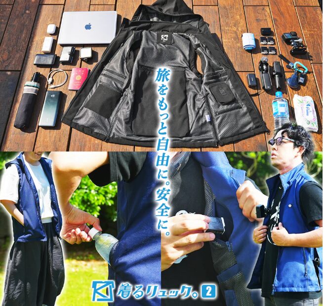 もーりーチャンネルが紹介する着るリュックは、ベスト型もしくはジャケット型のウェアに大容量の収納ポケットを搭載したアイテムです。