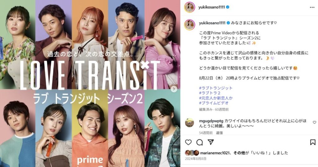 佐野友紀子さんに「彼氏がいるのではないか」という噂のきっかけは、恋愛リアリティ番組『ラブトランジット2』への出演が大きく関係しています。