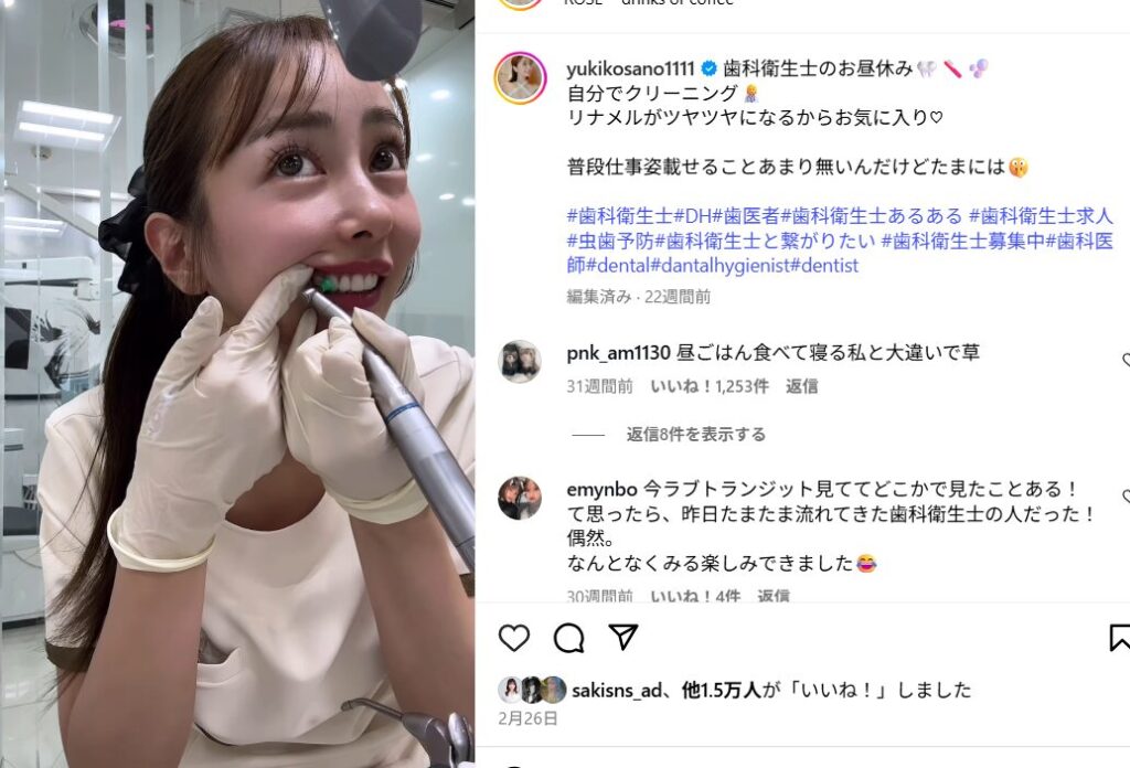佐野友紀子さんは、インフルエンサーやモデルとしての活躍が注目されがちですが、実は国家資格を持つ歯科衛生士でもあります。
