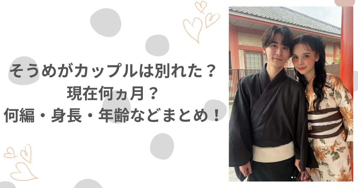 本記事では、そうめがカップルについて「別れた」「破局」といった噂の真相から、現在の交際状況、何ヵ月付き合っているのかという期間、出演した何編、年齢や身長、記念日に関する情報まで総合的に整理してきました。