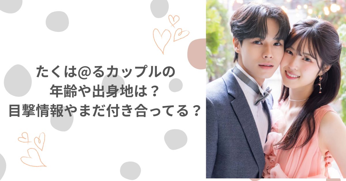 さらに、出身や年齢、高校の情報を踏まえながら、たくは@るカップルの目撃情報や、まだ付き合ってるのかという疑問、何編と呼ばれる理由、交際が何ヵ月続いているのかについても解説します。